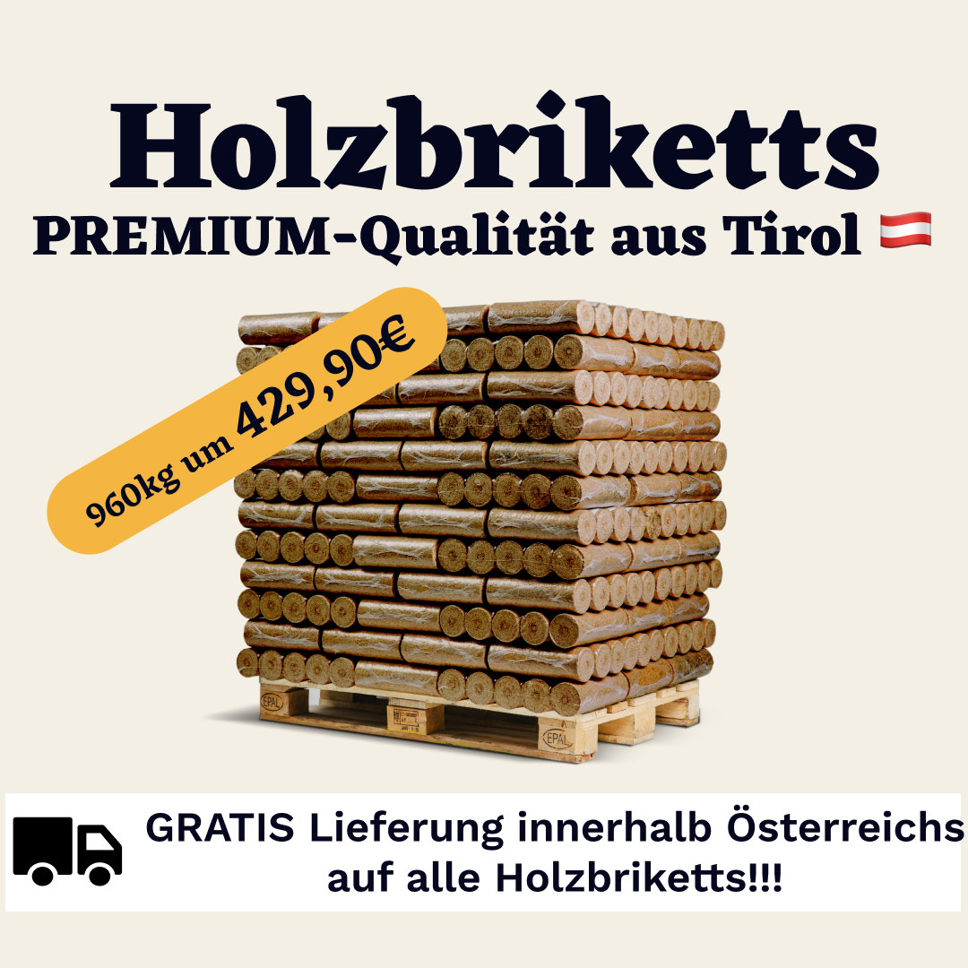 PREMIUM Holzbriketts 960 kg mit Loch - Hoher Heizwert, Wenig Asche, Umweltfreundlich.